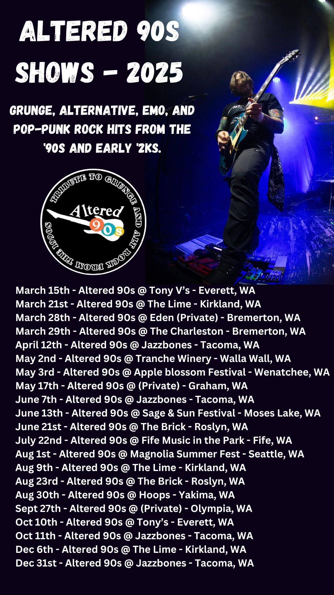 Ryan was drawn to music at an early age, performing with a nationally ranked competition band. In middle school, guitar caught his attention and a series of Blues and Metal projects followed. After high school, Ryan started building a home recording studio and worked with several local bands while developing sound engineering experience. After moving from Tulsa, OK to Dallas, TX, Ryan continued improving his guitar techniques and worked with several local bands. He then took a break from performing and traveled the world with a new consulting business. Seeking a return to his core, Ryan moved to Seattle in 2015 and started working on local projects before joining Altered 90s. A few months later Ryan helped kickstart the Warped 2K Cover band. You can find Ryan playing 2-4 shows a month throughout WA and OR.
